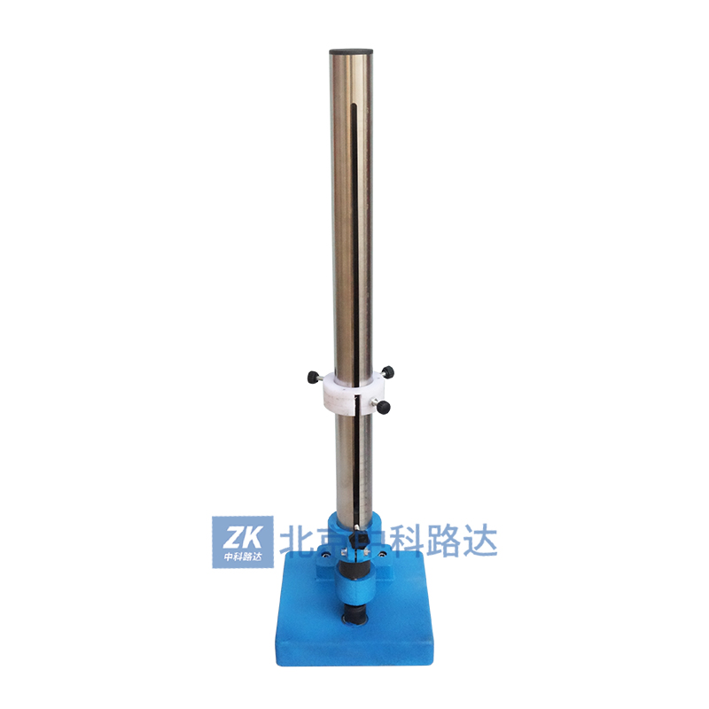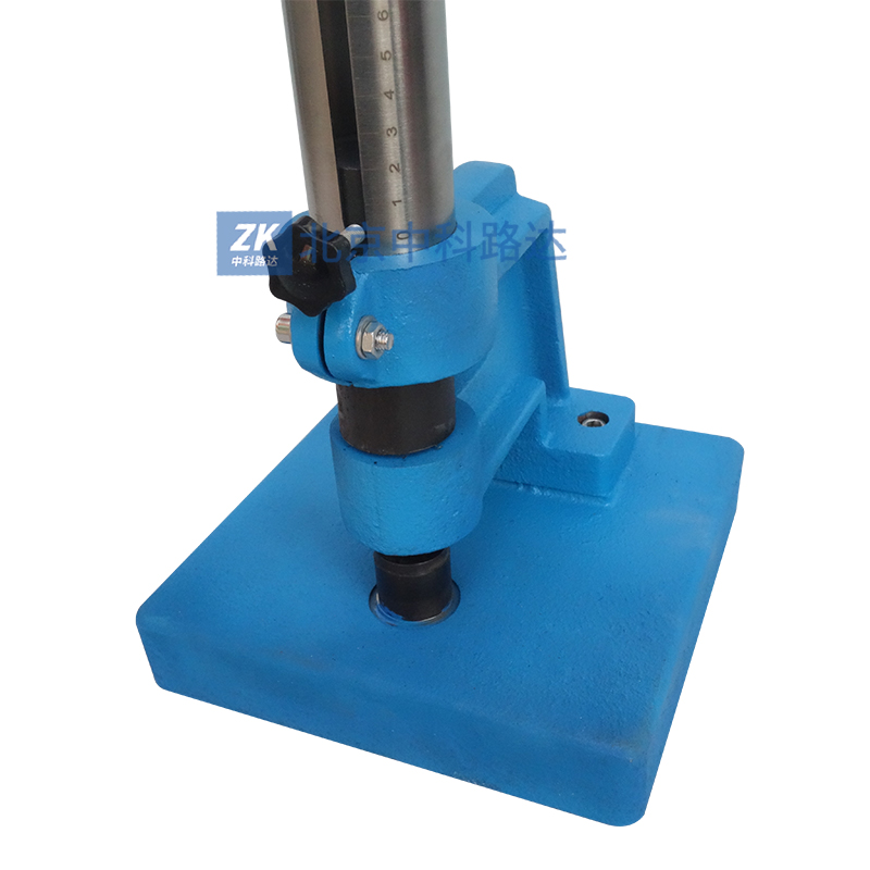 根據(jù)GB/T1732-1993《漆膜耐沖擊測定法》標(biāo)準(zhǔn)設(shè)計,利用重物從高處落下沖擊漆膜,以測定漆膜的沖擊強度。由控制器螺釘將重錘定在所要求的高度上,其高度由定位標(biāo)上可讀出,按壓控制器螺釘則控制器彈簧被壓縮,這時控制器滑塊的圓孔與控制器上蓋及控制器下底的圓孔對正掛鉤,使所聯(lián)結(jié)的重錘落下,撞擊沖桿,沖桿向下作用在事先放在枕墊塊上的是樣板上,之后提升重錘體,取出試驗過的樣板以觀察樣板上漆膜試驗情況。