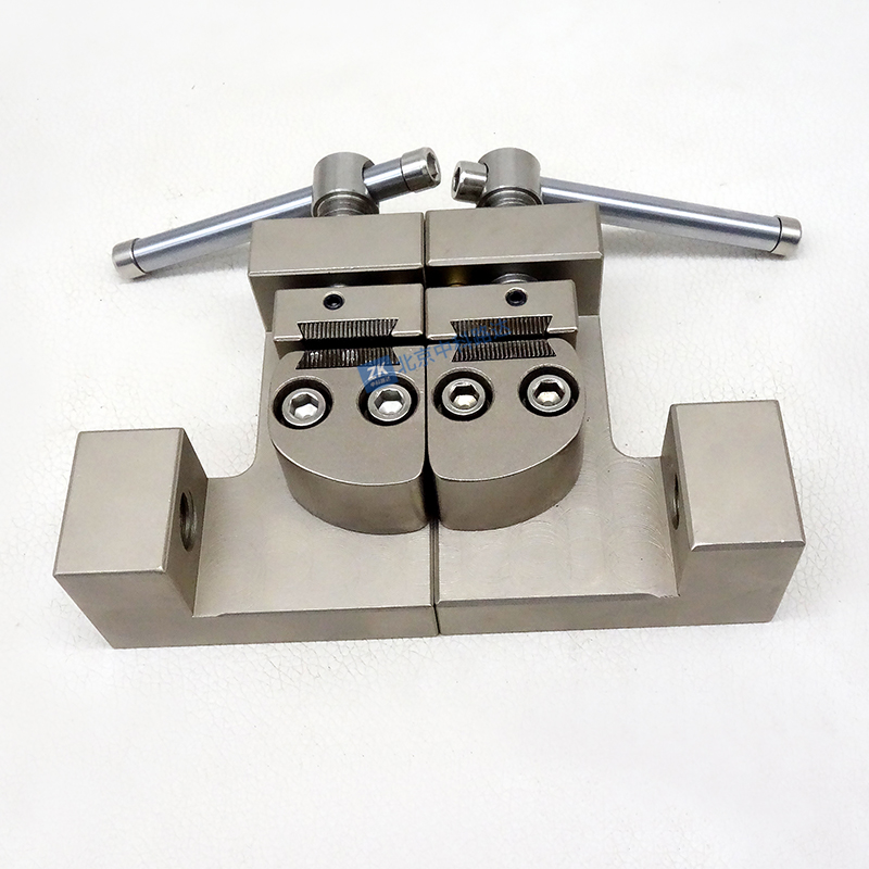 本夾具配合試驗(yàn)機(jī)用于金屬絲的拉伸強(qiáng)度試驗(yàn)。可快速安裝試件,不易打滑。