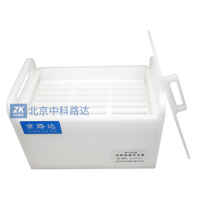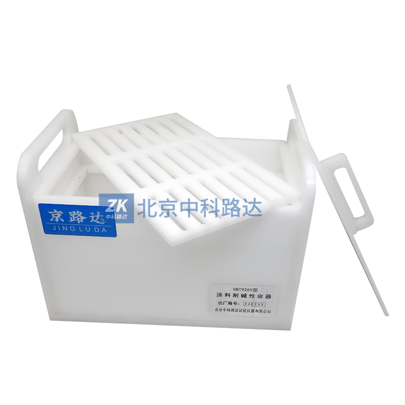 本容器用于建筑涂料涂層耐堿(飽和氫氧化鈣溶液)性的測定,符合GB/T9265-2009《建筑涂料涂層耐堿性的測定》標準要求。整體采用塑料熔接,耐酸堿,不漏水,不易損壞。