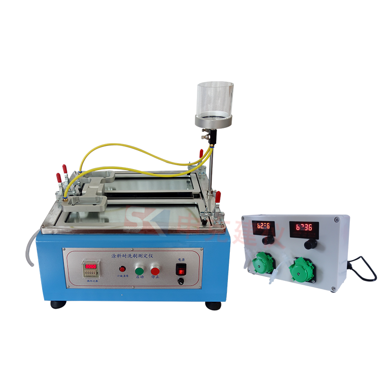 恒流供水器用于配套涂料耐洗涮測量儀使用,以達(dá)到標(biāo)準(zhǔn)要求的約0.04mL的速度滴加洗刷介質(zhì)的要求。流量數(shù)字顯示,控制準(zhǔn)確,兩路可同時(shí)工作,分別控制,以滿足兩個(gè)試件同時(shí)試驗(yàn)的需要。符合GB/T9266-2009《建筑涂料涂層耐洗刷性的測定》和GB/T9755-2014《合成樹脂乳液外墻涂料》的標(biāo)準(zhǔn)要求。