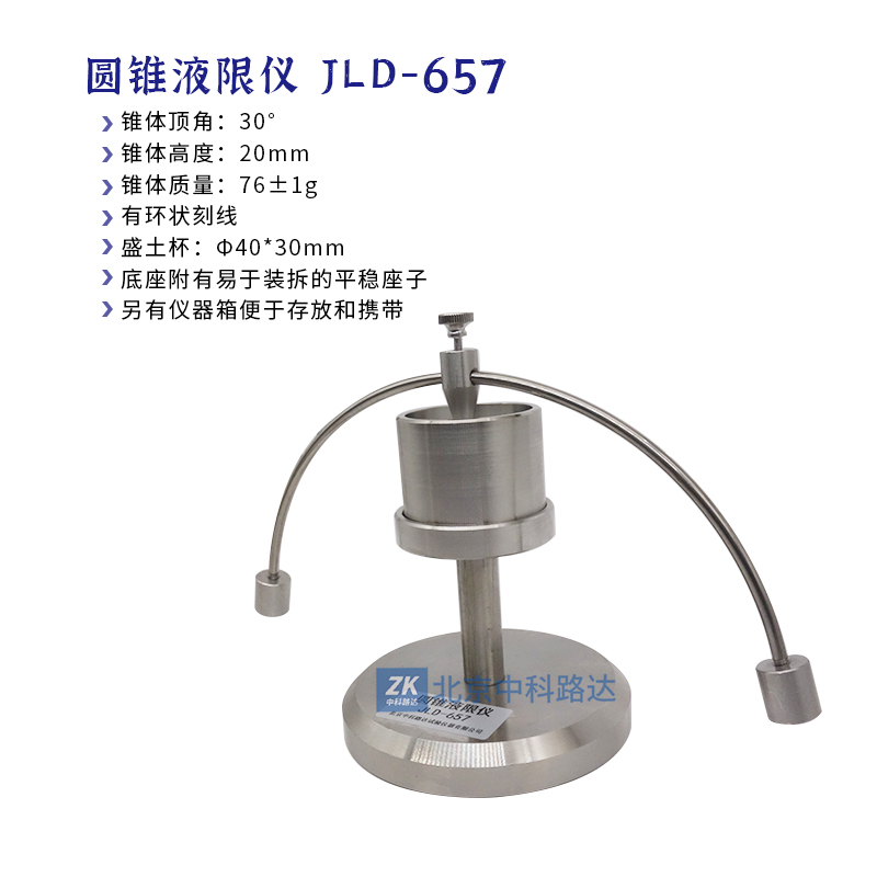 用于測定土的液限,采用圓錐儀法,符合TB10102-2023《鐵路工程土工試驗(yàn)規(guī)程》,TB/T2140.2-2018《鐵路碎石道砟第2部分:試驗(yàn)方法》,GB/T 50123-2019《土工試驗(yàn)方法標(biāo)準(zhǔn) 》,JTG3430-2020《公路土工試驗(yàn)規(guī)程》的標(biāo)準(zhǔn)要求。