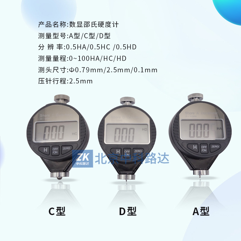 D型適用于高硬度材料的測試,一般用于硬橡膠、樹脂、壓克力、玻璃、熱塑性橡膠、印刷板、纖維等。
