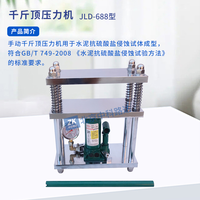 手動(dòng)千斤頂壓力機(jī)用于水泥抗硫酸鹽侵蝕試體成型,符合GB/T 749-2008 《水泥抗硫酸鹽侵蝕試驗(yàn)方法》的標(biāo)準(zhǔn)要求。