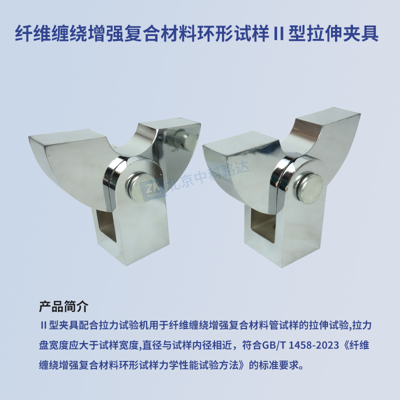 Ⅱ型夾具配合拉力試驗機用于纖維纏繞增強復合材料管試樣的拉伸試驗,拉力盤寬度應大于試樣寬度,直徑與試樣內(nèi)徑相近,符合GB/T 1458-2023《纖維纏繞增強復合材料環(huán)形試樣力學性能試驗方法》的標準要求。...