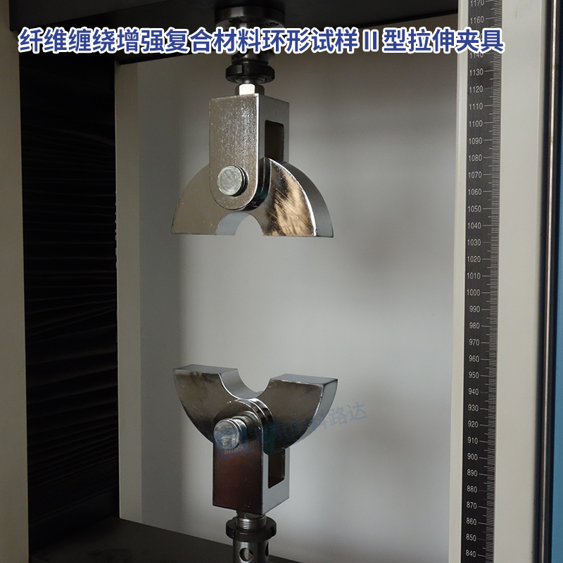 Ⅱ型夾具配合拉力試驗機用于纖維纏繞增強復合材料管試樣的拉伸試驗,拉力盤寬度應大于試樣寬度,直徑與試樣內(nèi)徑相近,符合GB/T 1458-2023《纖維纏繞增強復合材料環(huán)形試樣力學性能試驗方法》的標準要求。