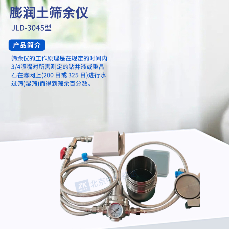 篩余儀的工作原理是在規(guī)定的時(shí)間內(nèi)3/4噴嘴對(duì)所需測(cè)定的鉆井液或重晶石在濾網(wǎng)上(200 目或 325 目)進(jìn)行水過(guò)篩(濕篩)而得到篩余百分?jǐn)?shù)。